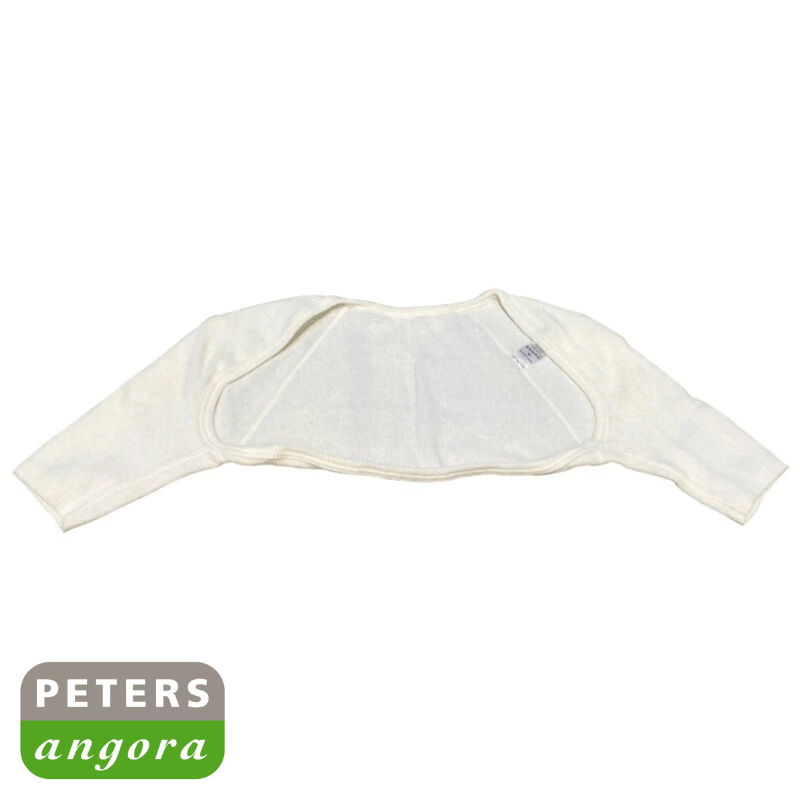 Caldo scaldaspalle in morbida e fine lana d'angora di Peters Angora, che isola e fornisce un calore naturale. Lo scaldaspalle ha maniche corte, trattiene bene il calore ed è comodo da indossare.