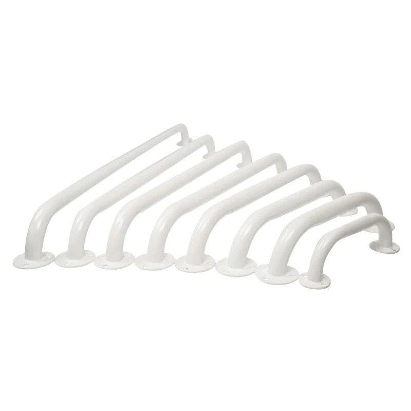Impugnature di supporto disponibili in varie lunghezze da 15 a 81 cm. L'impugnatura è adatta per bagni e altri luoghi dove è necessario un sostegno aggiuntivo. Il maniglione è bianco e può essere utilizzato sia all'interno che all'esterno.