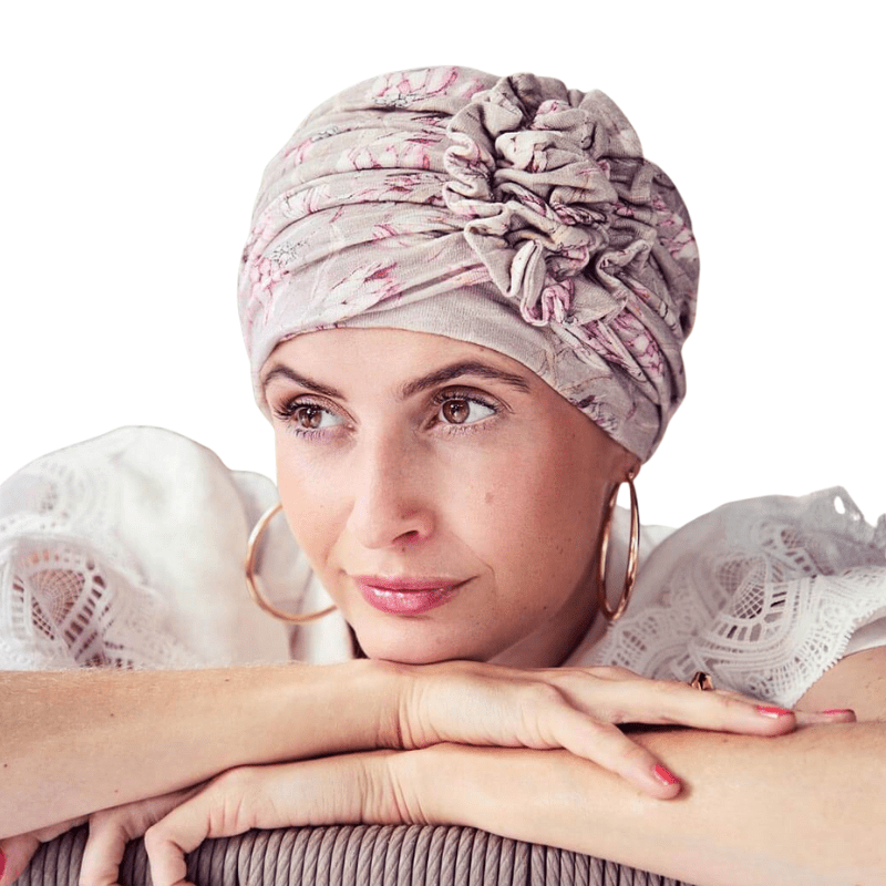Elegante turbante con dettagli floreali