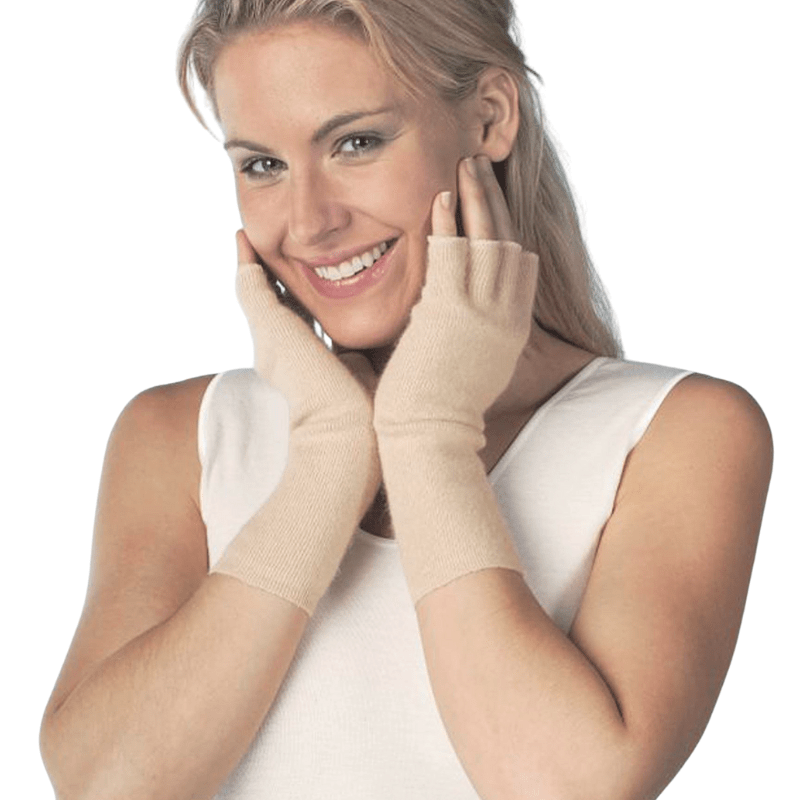 Handsker med åbne fingre i blødt og eksklusivt angorauld fra Peters Angora, der holder både hænder og håndled varme. Da handskerne er fremstillet i angorauld er de både isolerende og selvvarmende.