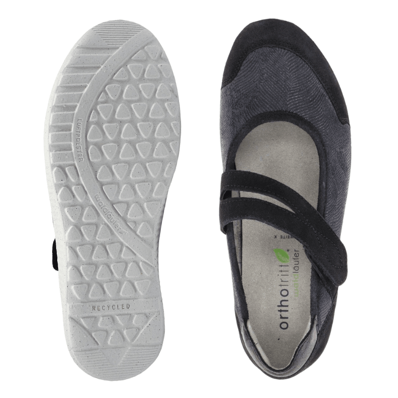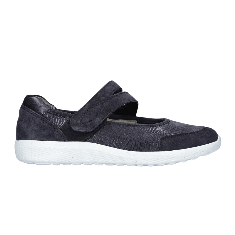 Let og rummelig damesko fra Waldläufer i skind og tekstil med stretch, som giver en mere fleksibel overdel omkring forfod og vrist. Det kan være en fordel for dig, der har følsomme fødder eller døjer med knyster.