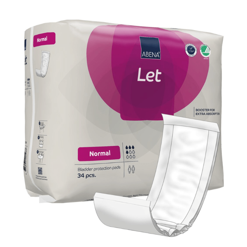 Abena Let er et tyndt rektangulært bind og kommer i 3 størrelser. Anvendes til let til moderat inkontinens.