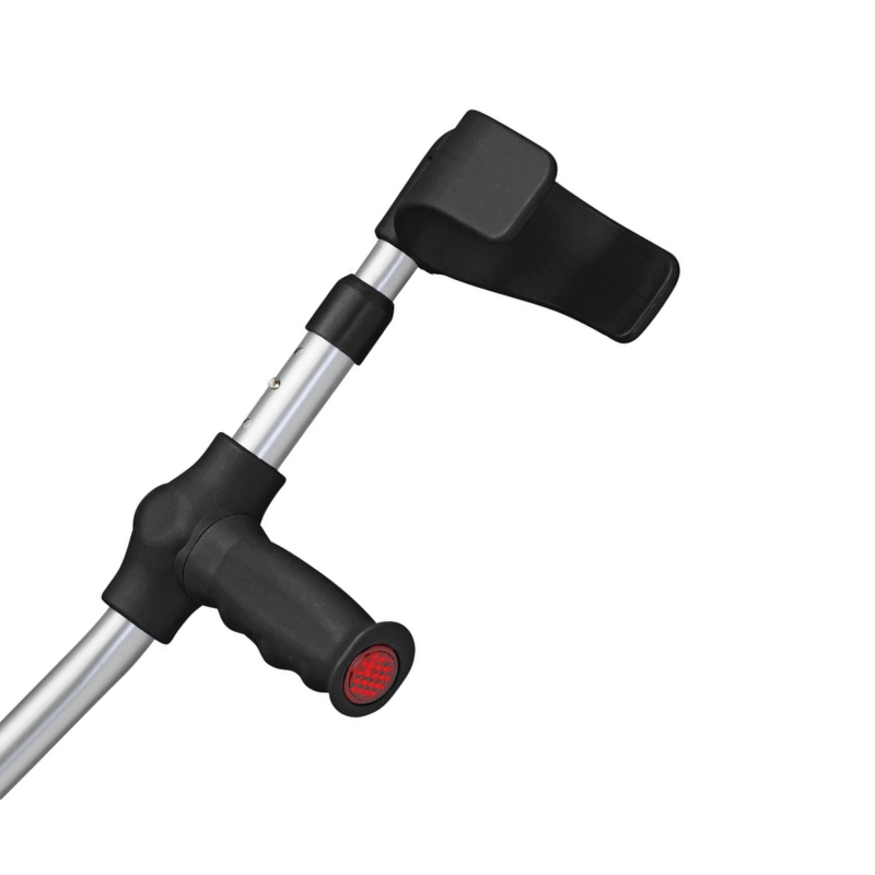 Krykken er udstyret med reflekser både foran og bagpå.