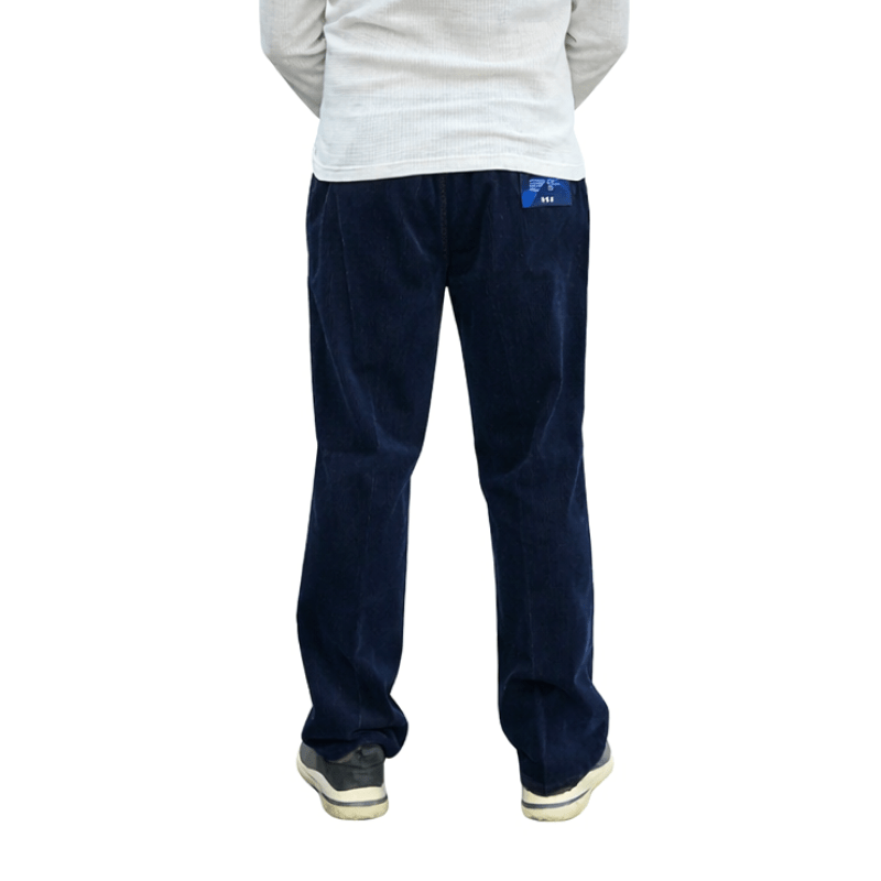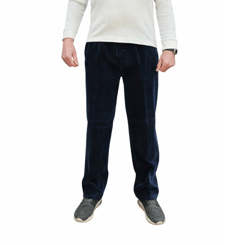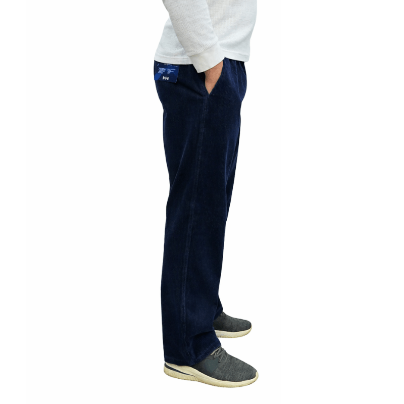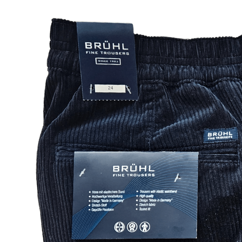 Pantaloni morbidi e super confortevoli del rinomato marchio tedesco Brühl. Questi pantaloni sono realizzati in un velluto blu marino di alta qualità con un ampio elastico in vita, che assicura una vestibilità comoda e rende facile indossarli e toglierli.