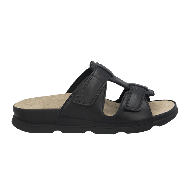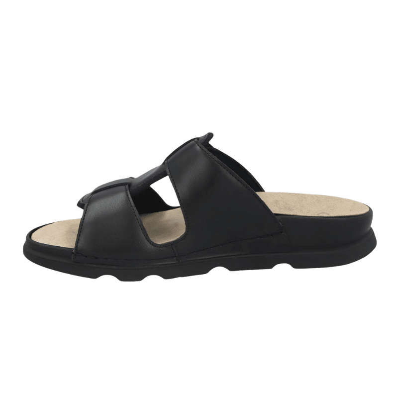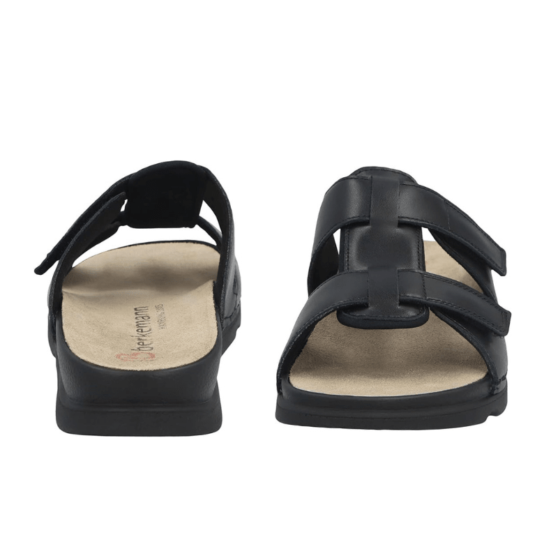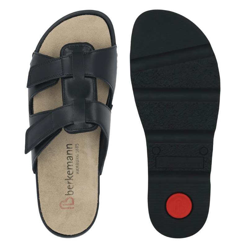 Sandalo da donna leggero e traspirante di Berkemann in pelle nera, dal design essenziale e raffinato.