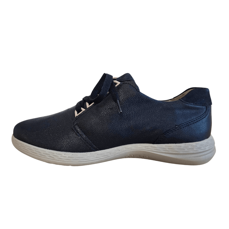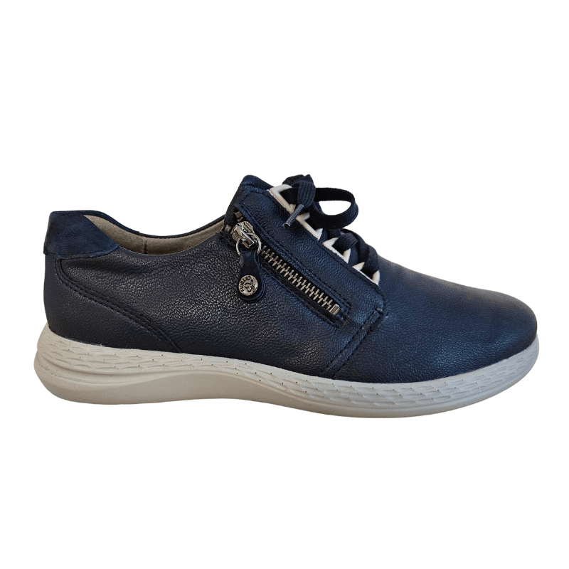 Sneaker Fidelio blu scuro con tomaia in pelle e multi-stretch per un comfort, durata e flessibilità ottimali. La scarpa è dotata di lacci e di una cerniera laterale, ideale per l'uso quotidiano.