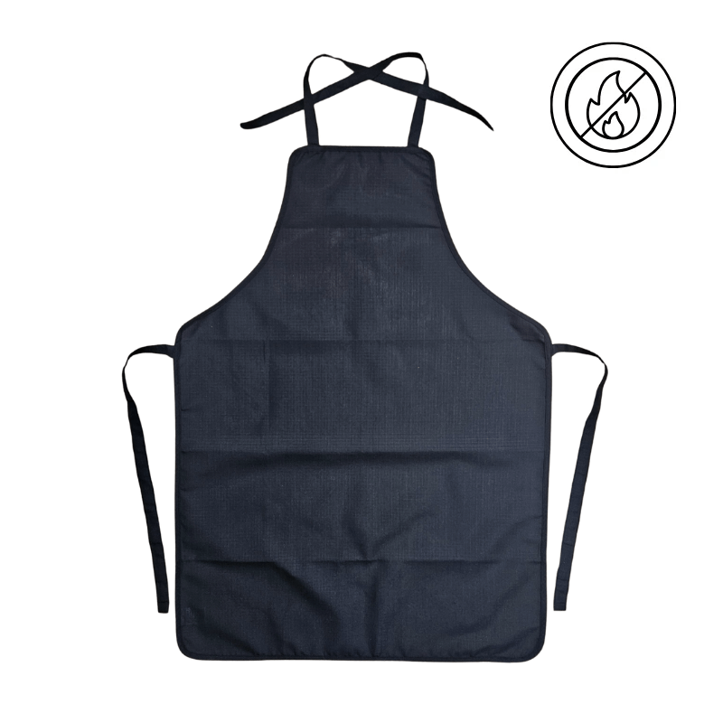 Questo pratico grembiule è realizzato in fibra aramidica ignifuga e protegge vestiti e pelle da scintille e liquidi. Si lega facilmente con i lacci al collo e in vita. Il grembiule è blu marino, resistente e può essere lavato frequentemente.