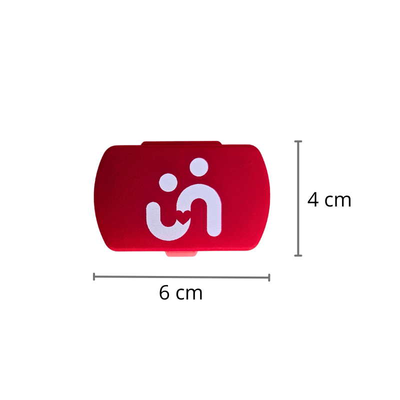Questa pratica scatola per pillole con due compartimenti separati in un vivace colore rosso è sia funzionale che compatta. Con una dimensione di 6 x 4 cm si adatta facilmente in tasca, borsa o beauty case – ideale per l'uso quotidiano o durante i viaggi.
